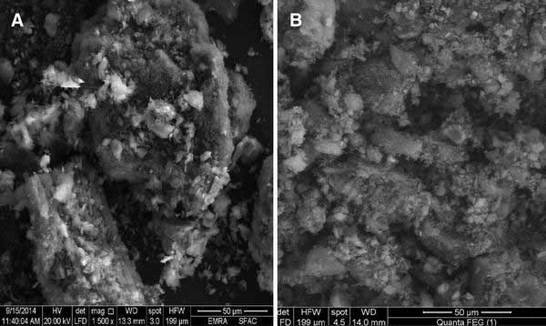 活性炭的SEM顯微照片顯示在圖.1a,b中。活性炭在吸附前的SEM圖像(圖.1a)顯示了單個顆粒的不規(guī)則大小和形狀以及不均勻表面形態(tài)。多孔結構呈現(xiàn)出不同的寬度。吸附后,很明顯,該孔已覆蓋的草氨酰(圖.1的B)。
