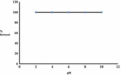 在2-10的pH范圍內(nèi)研究活性炭對草酰胺的吸附。通過在不同pH下?lián)u動1g活性炭和100mL的草酰胺溶液(500mg / L)來研究初始溶液pH的影響。將燒瓶攪拌2小時。通過加入少量的HCl(0.1M)或NaOH(0.1M)將溶液的pH值調(diào)節(jié)到所需的值。